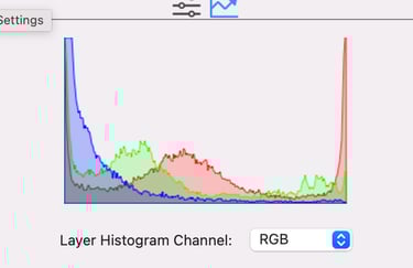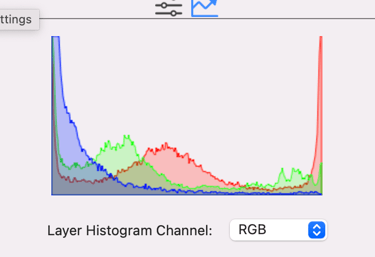Every document and image layer gets its own histogram—offering a live, visual snapshot of tonal and color distribution per layer.