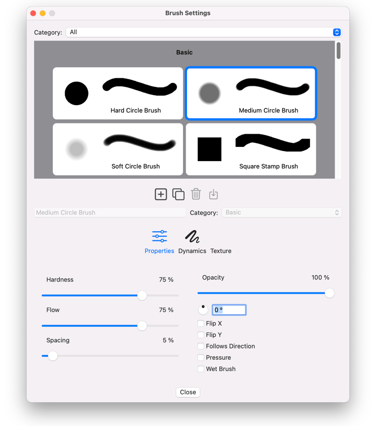 Unleash dynamic transformations with distortion brushes, each offering real-time, brushstroke-based manipulation.