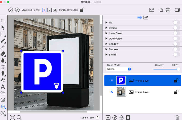 Perspective Warp enables you to adjust the perspective of your image by defining planes.